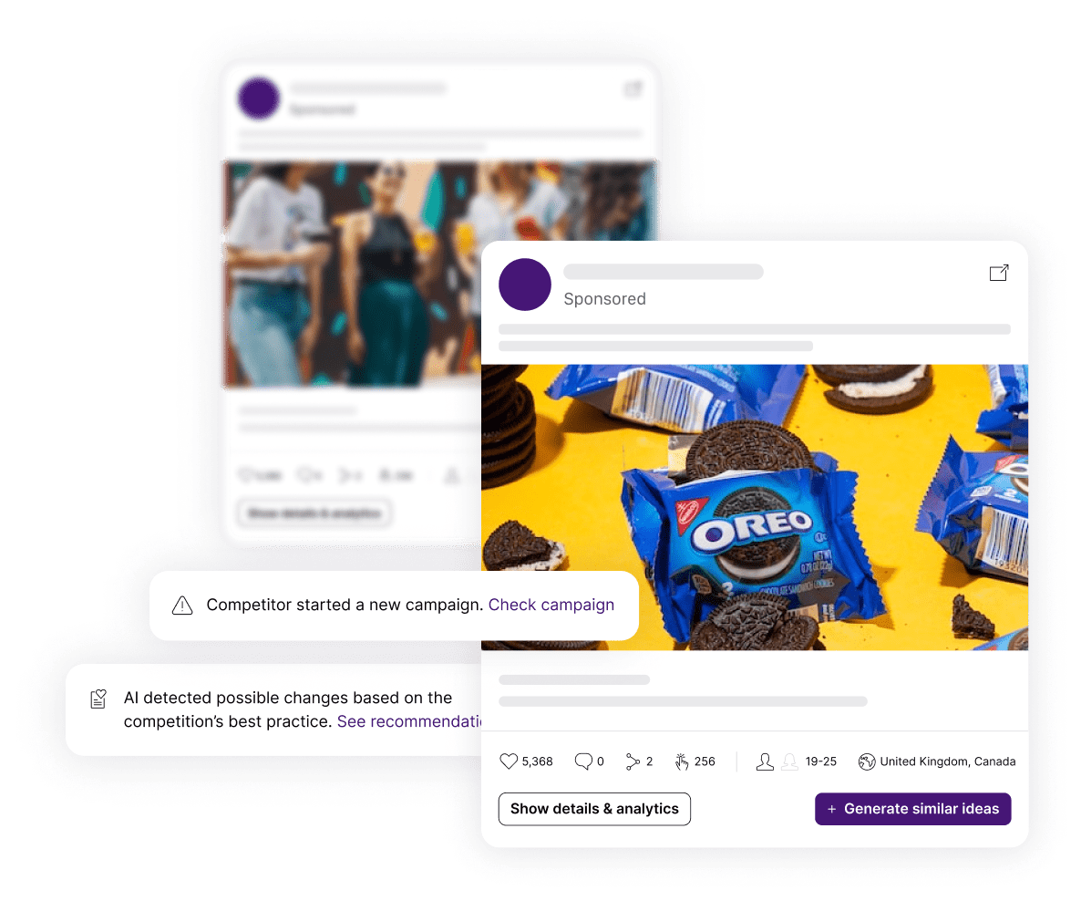 Our competitive research solution takes the guesswork out of advertising on Facebook. We provide the data you need to make informed decisions about your competitors’ ad campaigns, so you can gain valuable insights and stay ahead of the competition. With our automated and comprehensive monitoring, you will get instant signals about the competition changes and trending keywords that you are following.